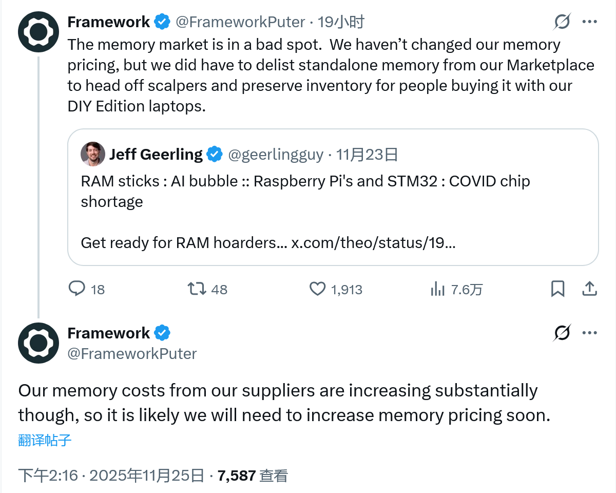 此外,模块化 PC 硬件制造商 Framework 也表示股票配资佣金,尽管该企业尚未调整内存定价(但涨价很可能即将到来),但为了保障 DIY 版 Framework 购买者拥有充足供应、打击黄牛倒卖行为,该企业在商城下架了独立售卖的内存产品。
